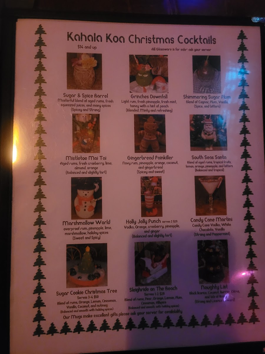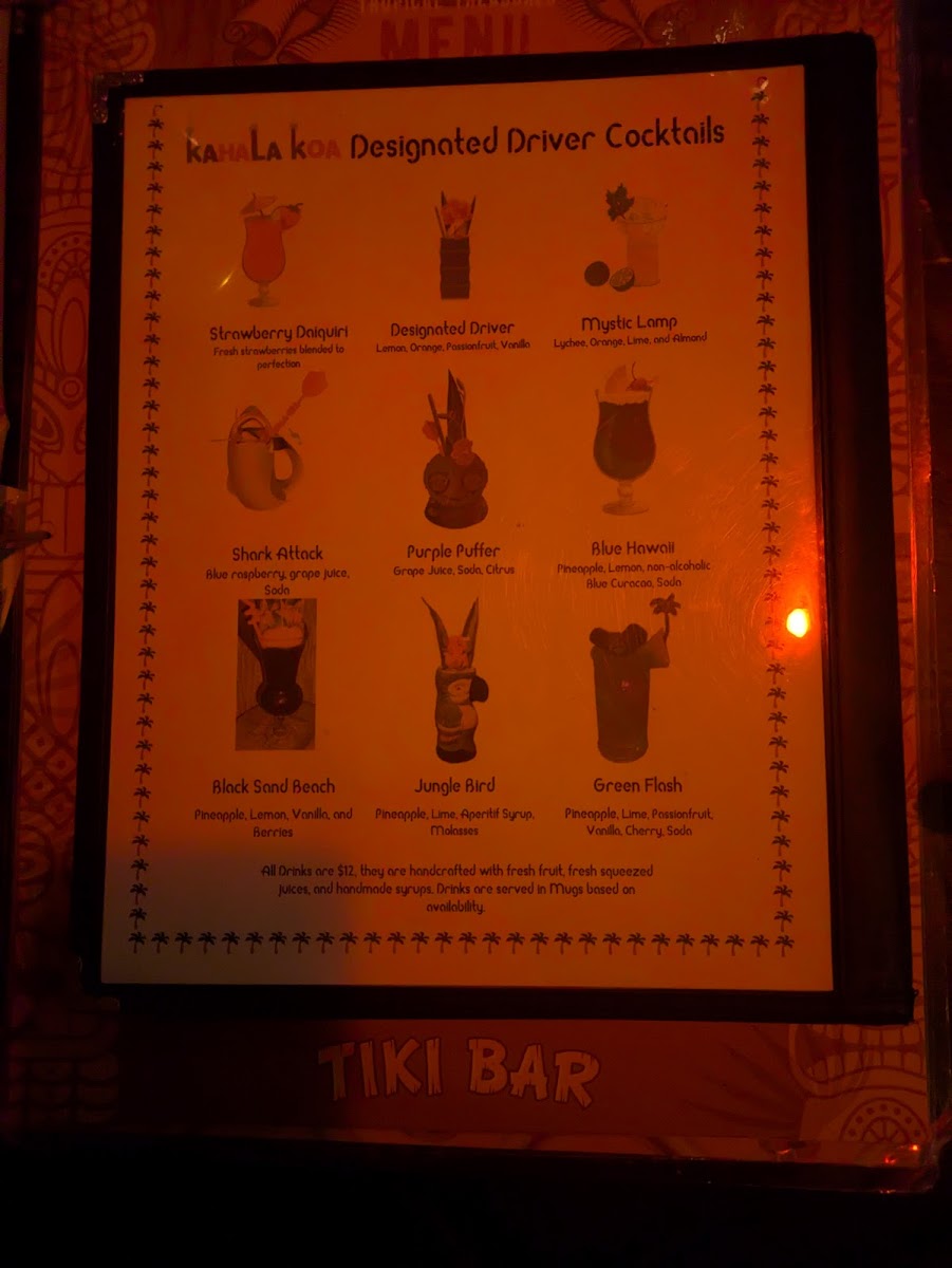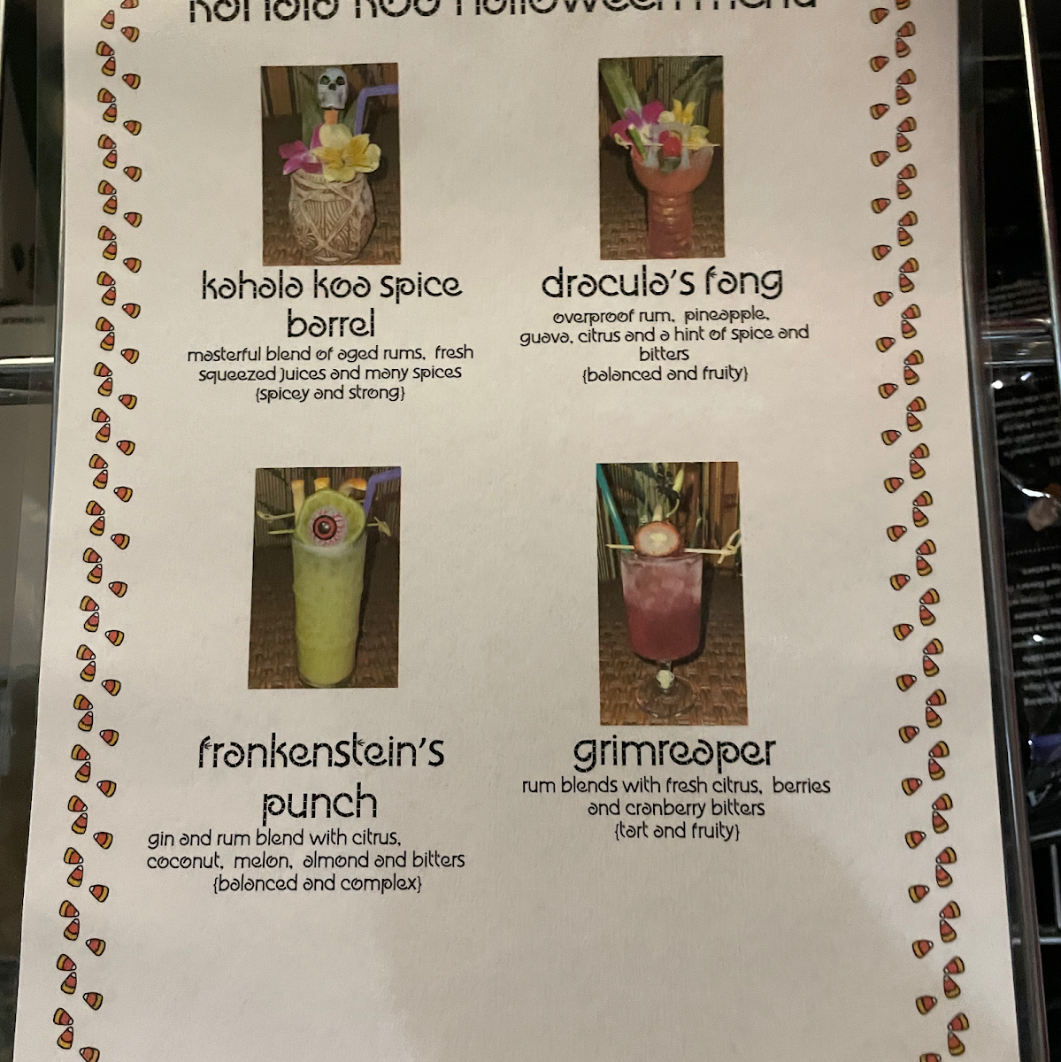 On the drinks side, the focus is on classic tiki cocktails alongside signature creations. Favorites like the Mai Tai, Blue Hawaii, and Pearl Diver invite moments of tropical escape, while standout specialty drinks—for example, the Kahala Rum Barrel or a festive Holiday Drink—offer something a bit different for those looking to explore new flavors. The menu also includes select sides like Pineapple Salsa, which complement the main offerings without overwhelming the relaxed vibe.