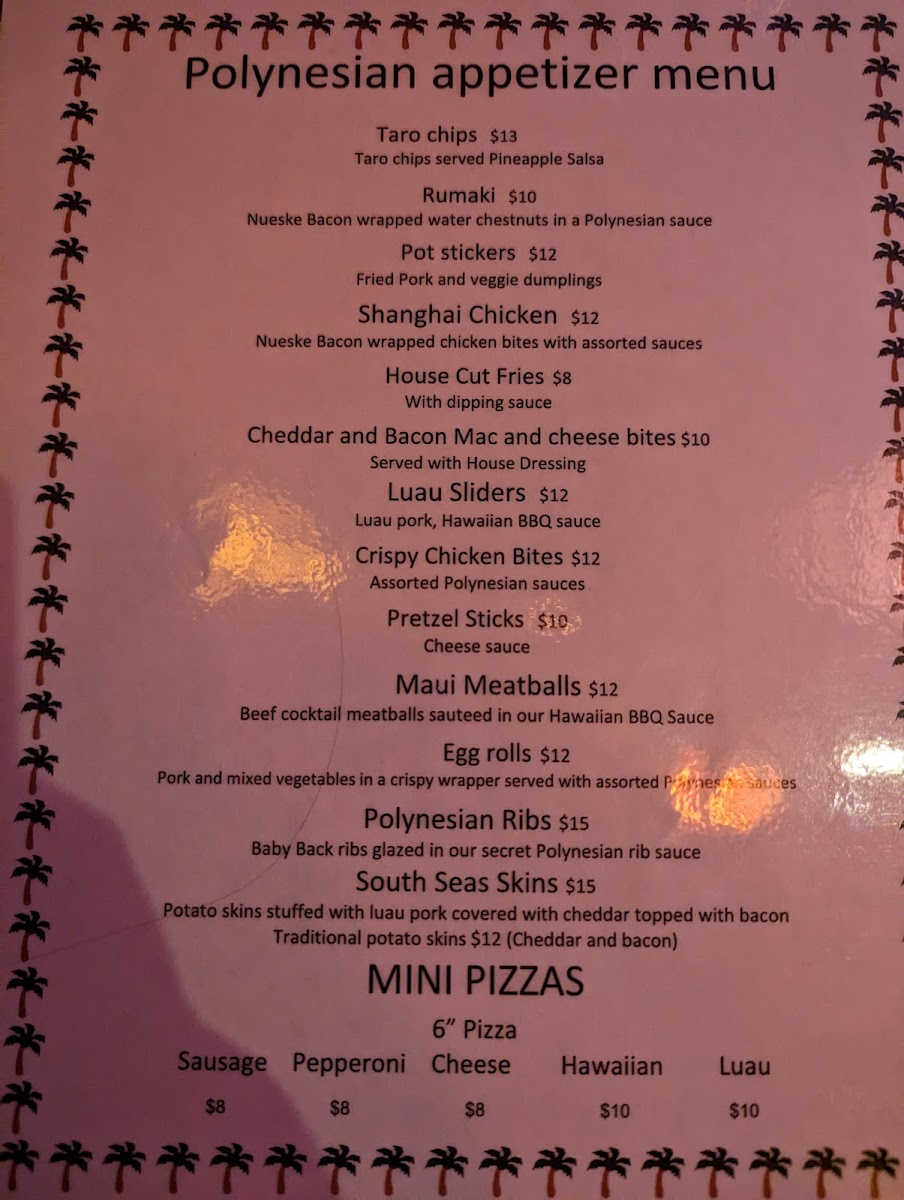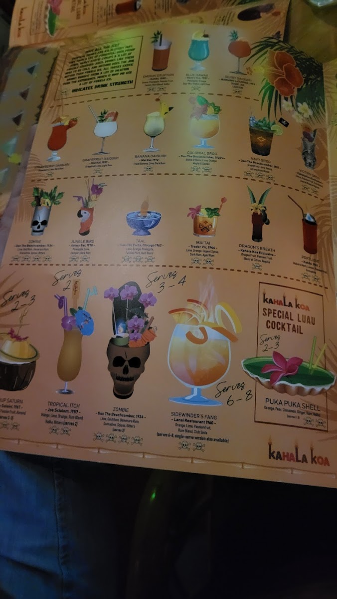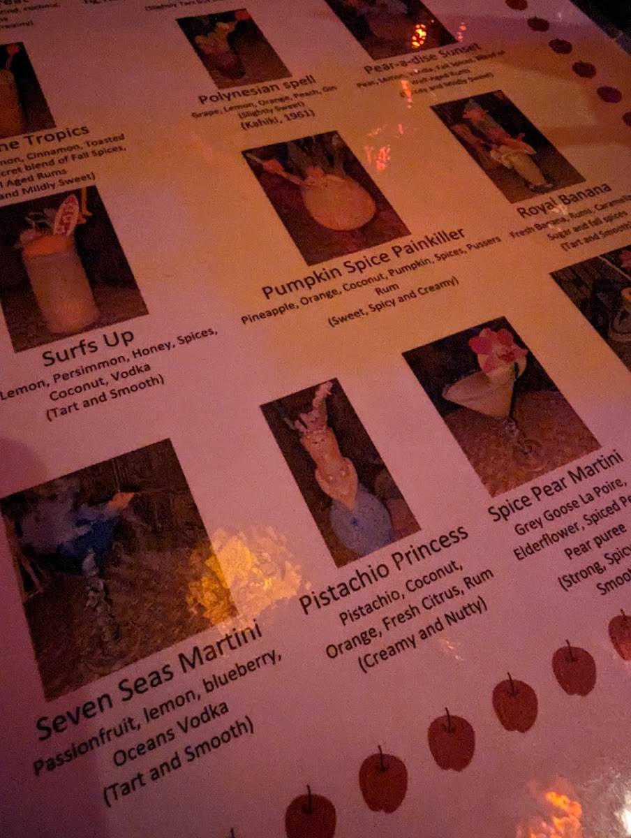 On the drinks side, the focus is on classic tiki cocktails alongside signature creations. Favorites like the Mai Tai, Blue Hawaii, and Pearl Diver invite moments of tropical escape, while standout specialty drinks—for example, the Kahala Rum Barrel or a festive Holiday Drink—offer something a bit different for those looking to explore new flavors. The menu also includes select sides like Pineapple Salsa, which complement the main offerings without overwhelming the relaxed vibe.