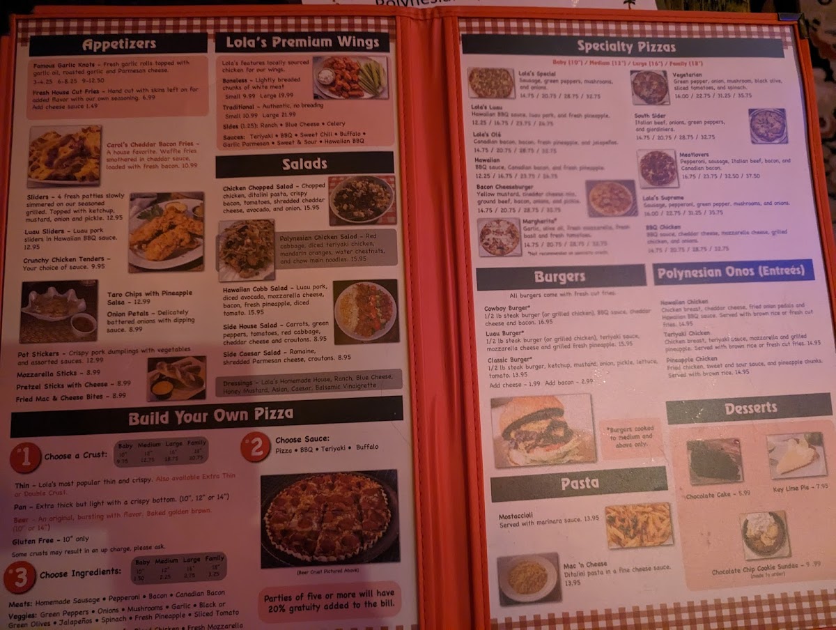 The menu at Kahala Koa Tiki Bar offers a relaxed mix of casual bites and carefully crafted tropical drinks, perfectly suited to its lively yet laid-back atmosphere. You’ll find a variety of pizzas featuring options like gluten-free and thin crusts, each topped with fresh, flavorful ingredients—from classic Build Your Own pizzas to island-inspired selections such as Hawaiian BBQ with fresh pineapple. These dishes make for satisfying, easy-going meals whether you’re sharing with friends or enjoying a casual night out.